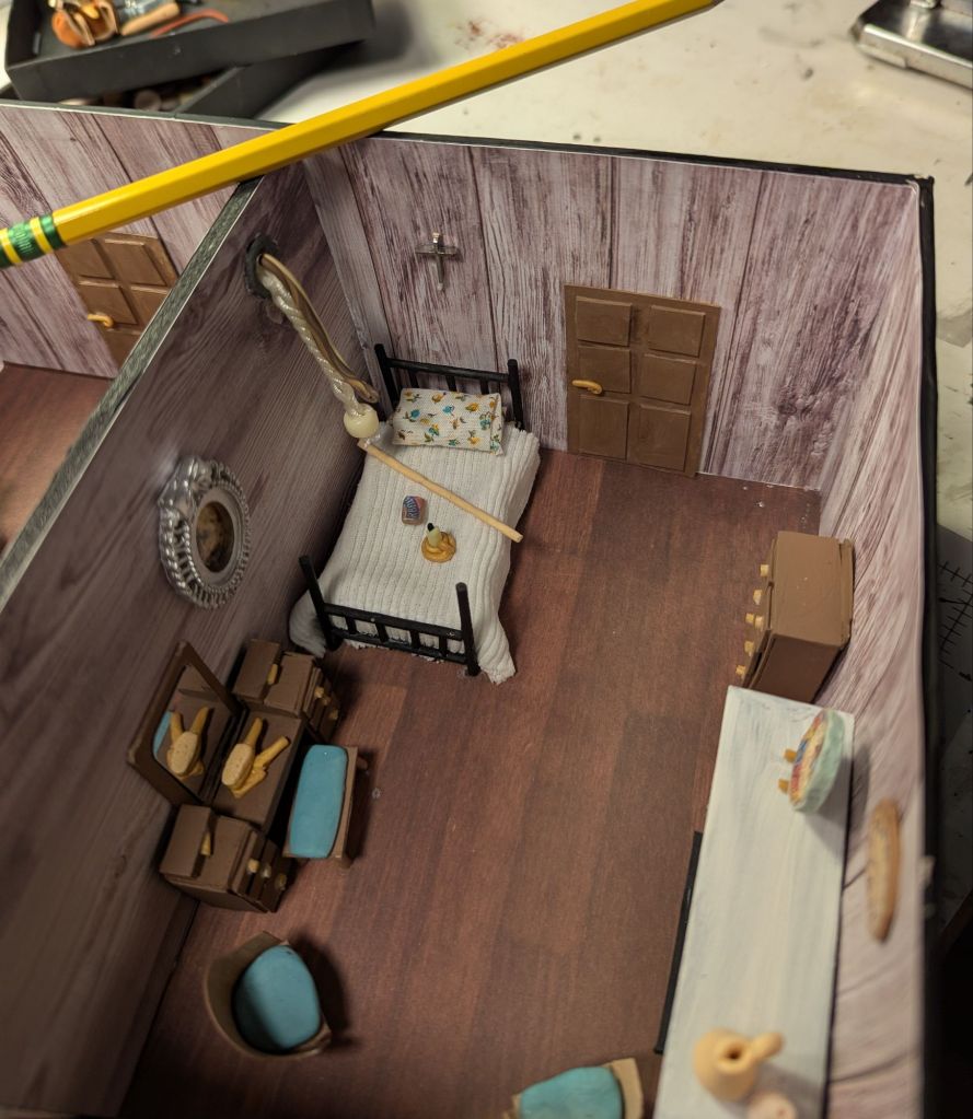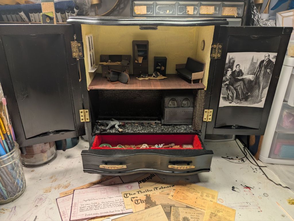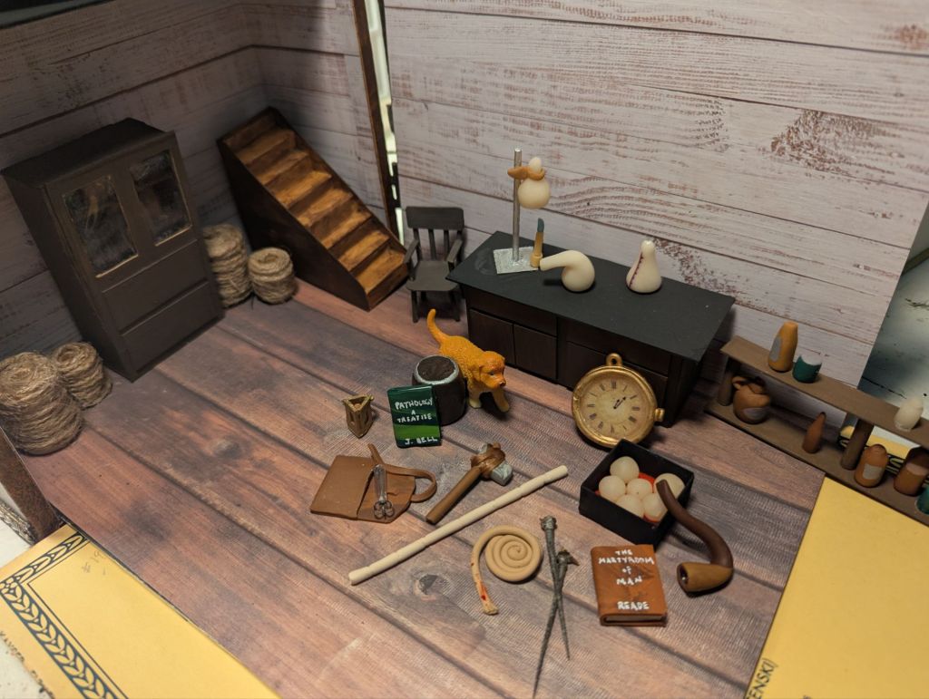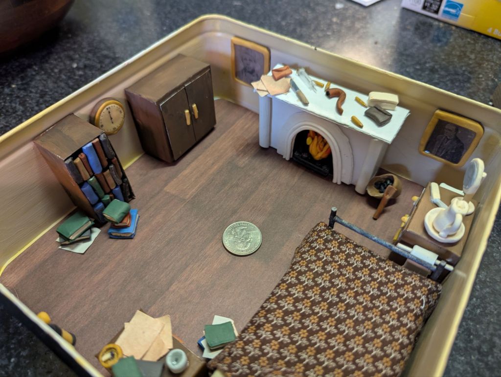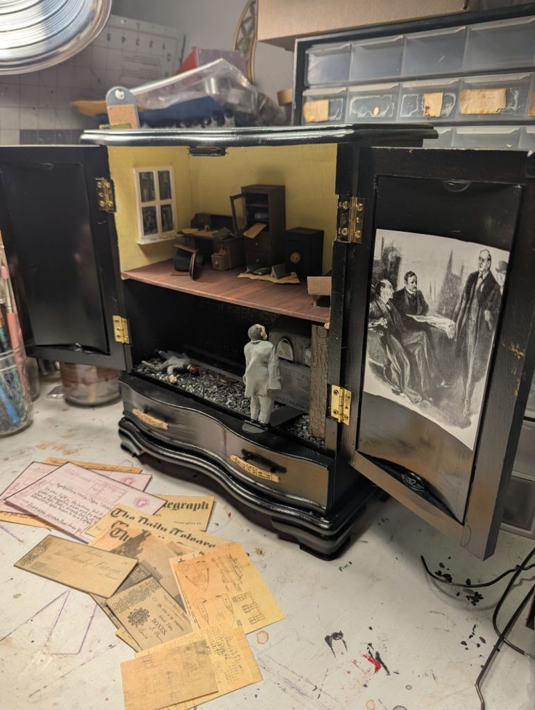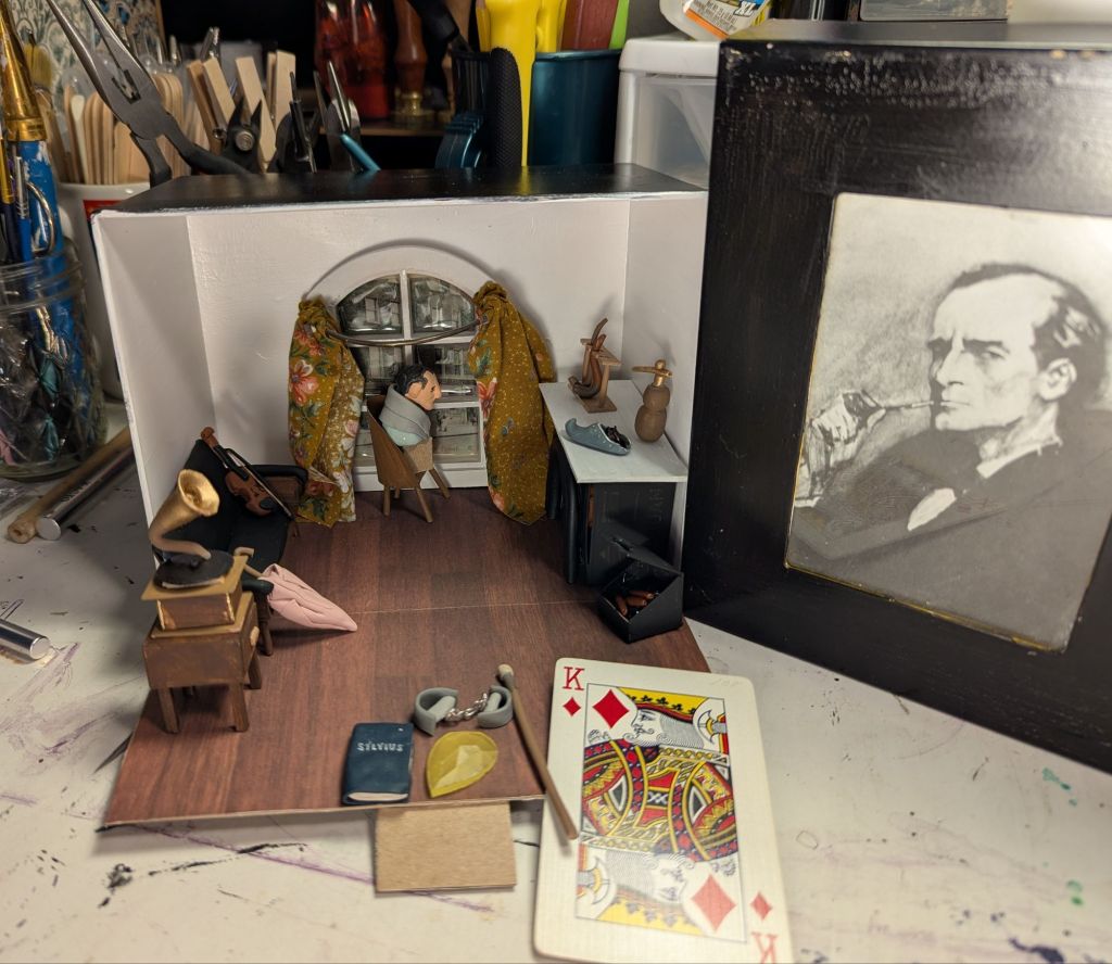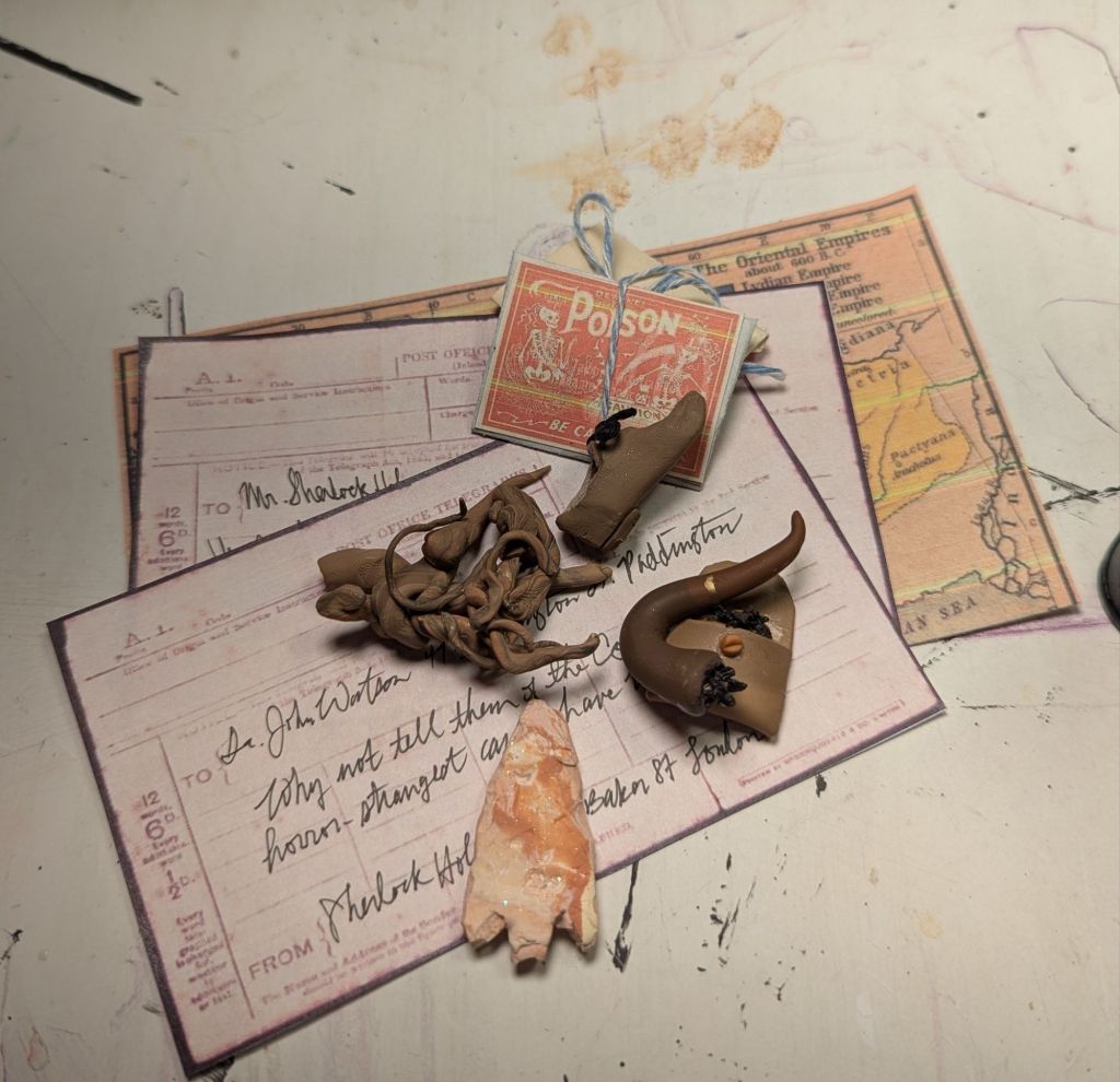 Mixed interior scene, other individual clay and paper clues. #sherlockholmes #literature #mysteries #art #miniatures #specialinterest