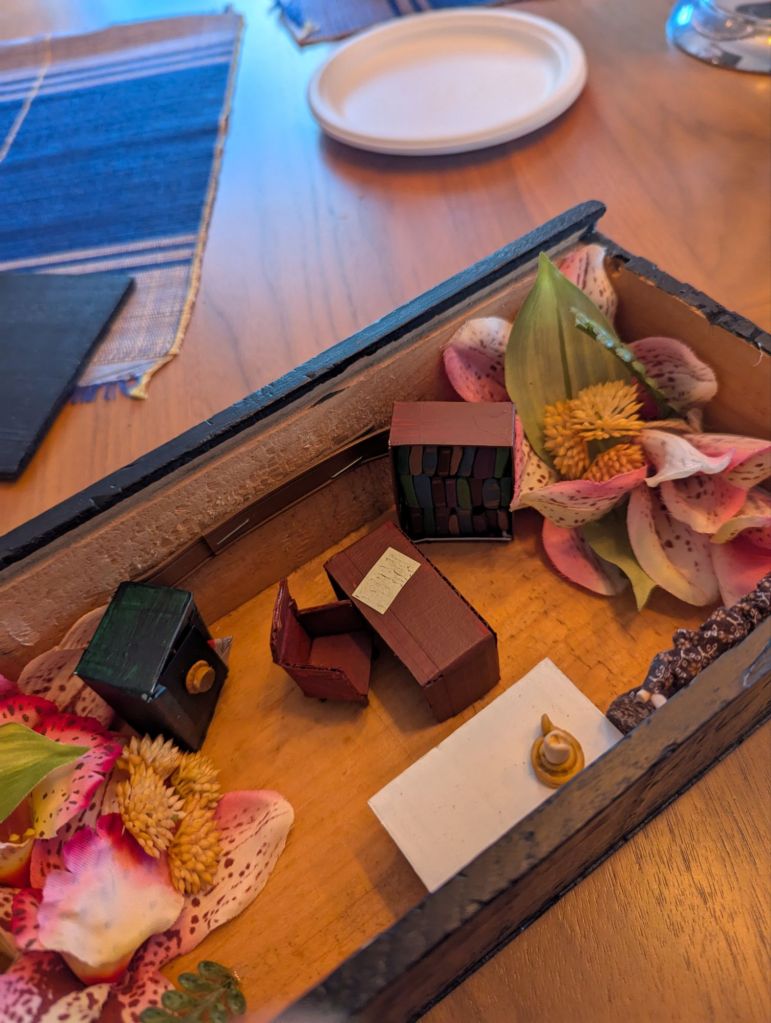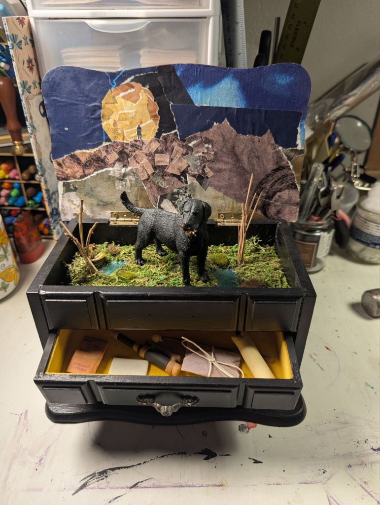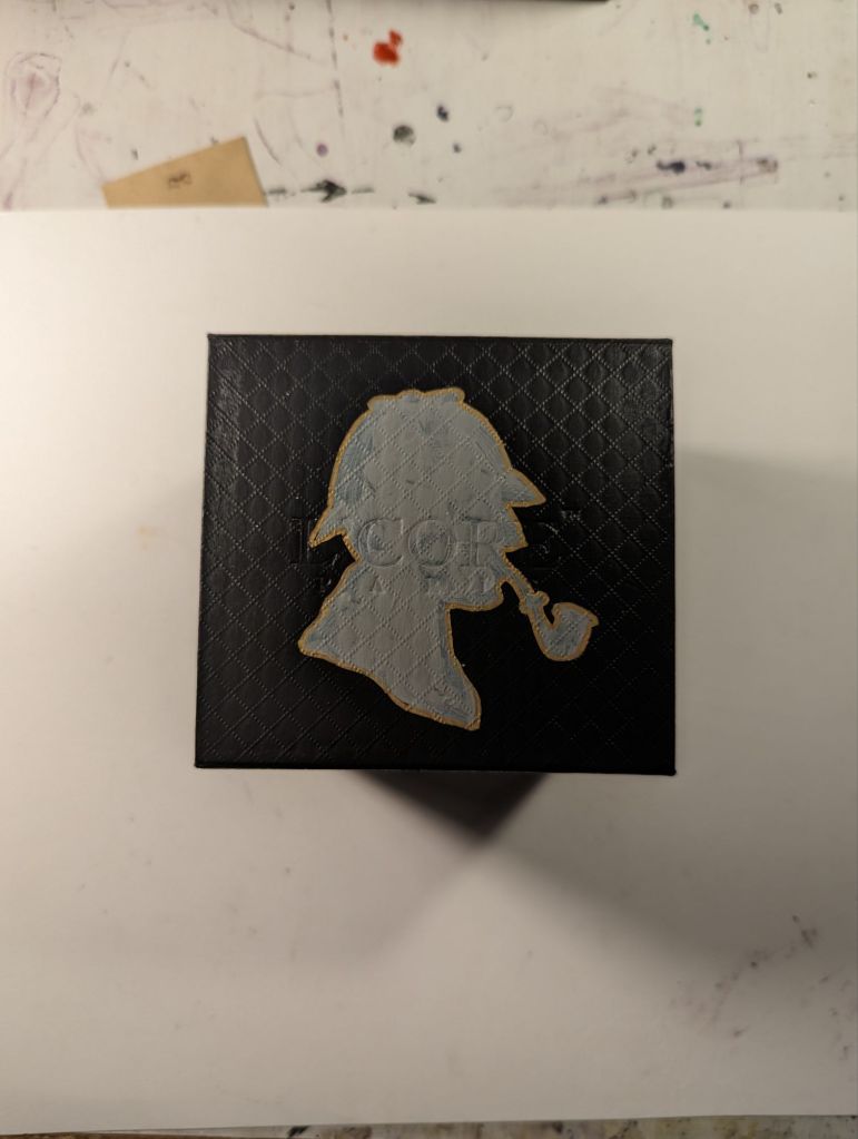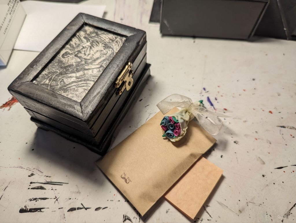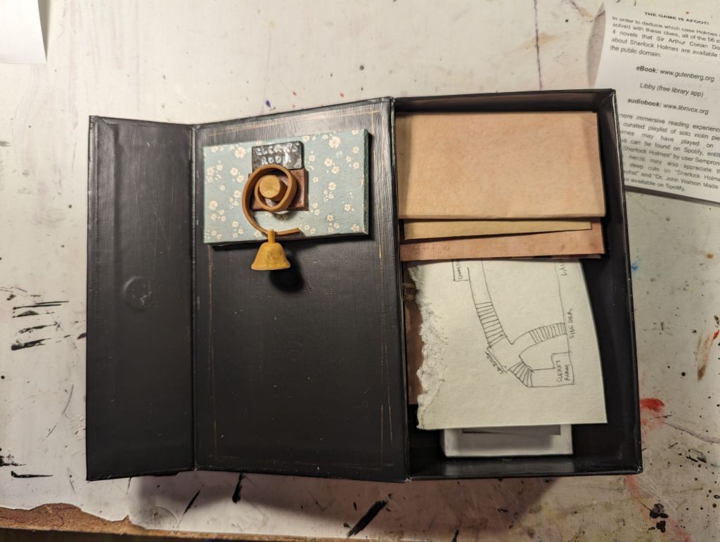Gifted to my therapist’s office. I wanted to do something special for one of my favorite Holmes stories, so I modified this junk store jewelry box. Now it’s 221-B, Baker Street.