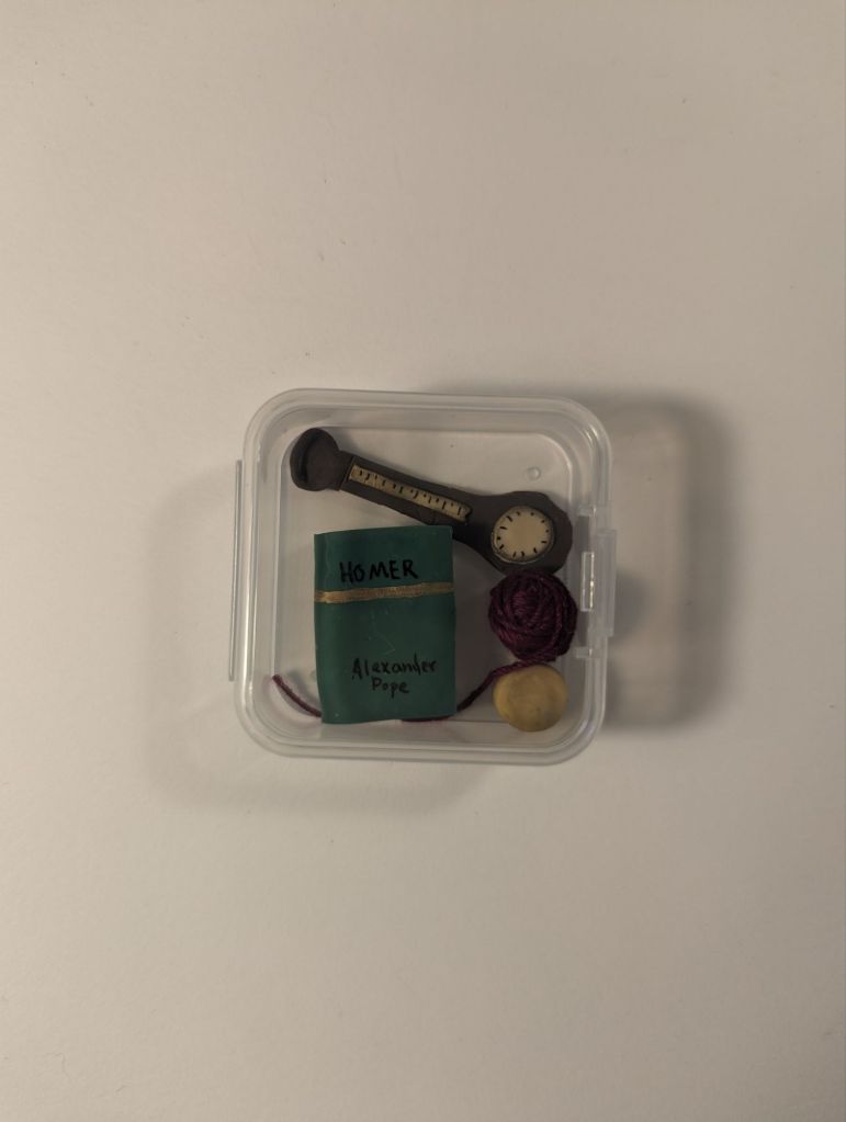 The bowl of oranges and carafe of water that Holmes knocks over and blames on poor Watson.The stolen barometer, ivory paperweight, ball of twine, and Pope’s Homer.The paper clues, including congratulatory letters to Holmes from European nobility, a telegram calling Watson to Holmes’s sickbed, calling cards, various other correspondence , and quotes from the story.