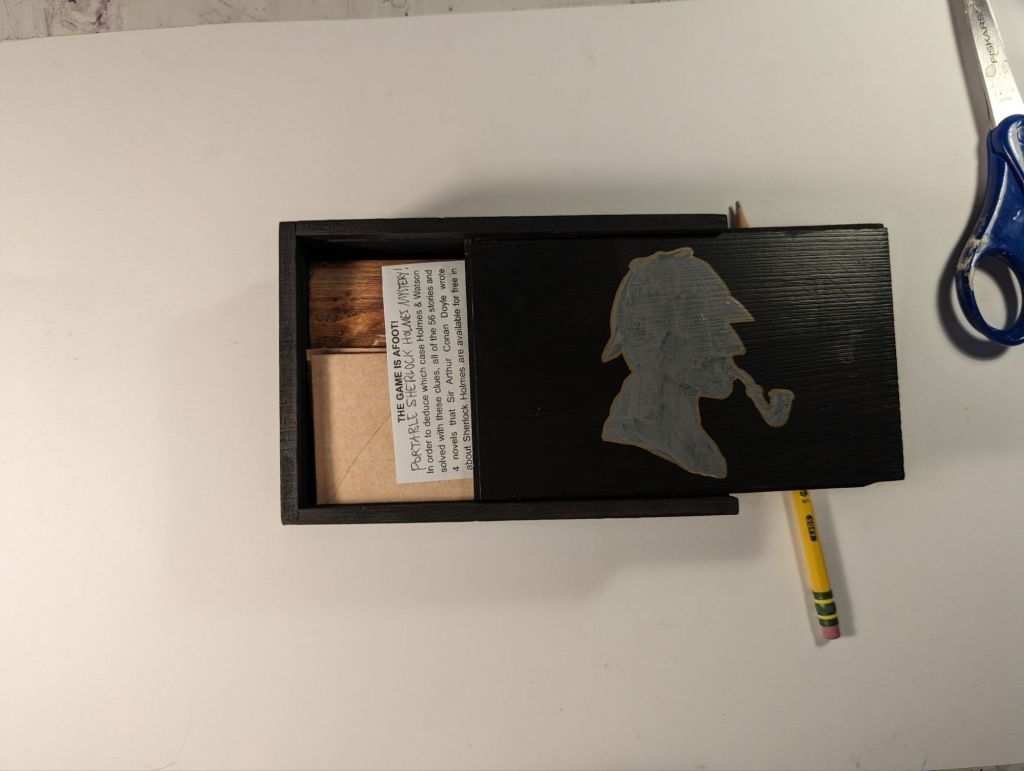In the beginning of this story Holmes shows Watson some clues from one of his old cases that are inside of a wooden box with a sliding lid. I was super excited when I remembered that I actually had one on hand.