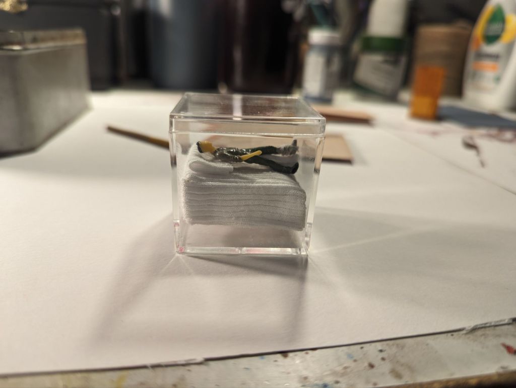 This is the second largest box I’ve made, approximately the size of a child’s shoe box. (My largest was “Silver Blaze,” which was in a wooden jewelry box that I modified to look like the front of 221B.) Both were very fun boxes to make, particularly since they are two of my favorite stories.