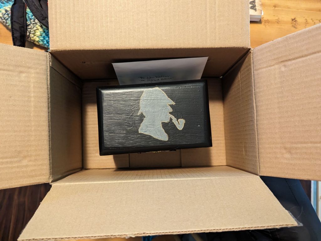 That’s why I wanted to send them a box – just a sign of respect and affection between Sherlock Holmes nerds. I sent them the best box I have available at the moment, which happens to be “The Resident Patient,” and I’m happy that it will have a loving forever home.